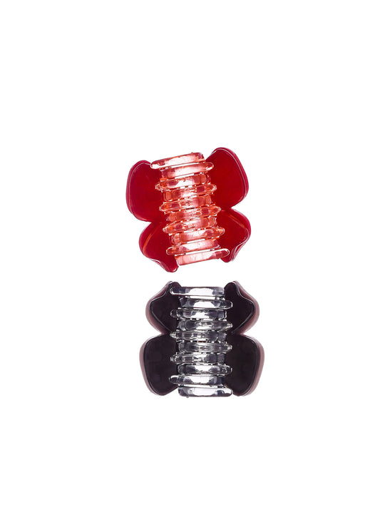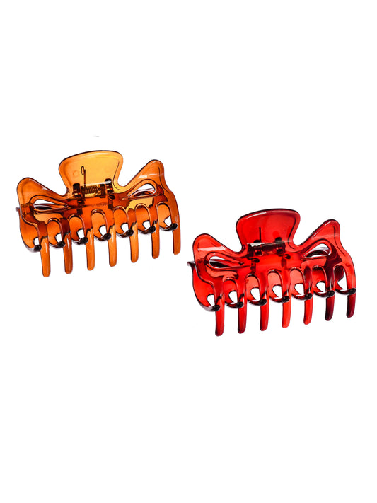 Set of 2 Red & Brown Big Hair Claw Clips Clutchers