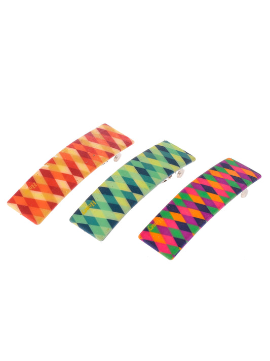Set of 3 Multi Colored Printed Geometrical French Barette