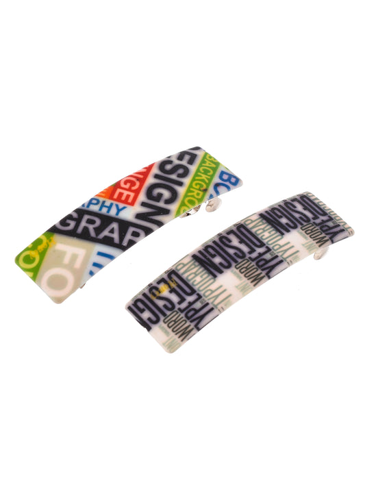 Set of 2 Multi Colored Printed Geometrical French Barette