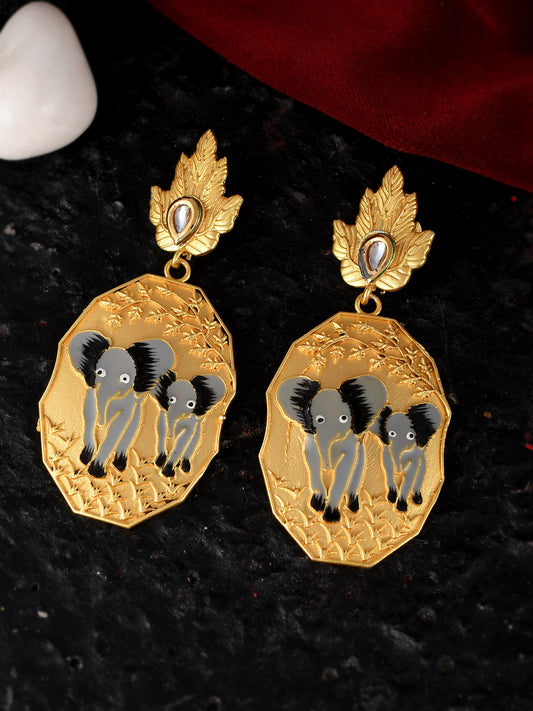 Gold Plated Hand Painted Ethnic Drop Earrings