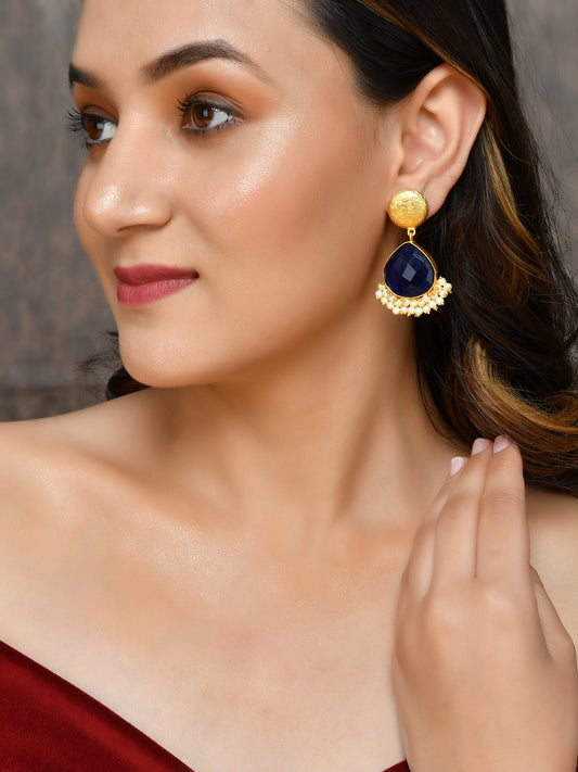 Gold Plated Contemporary Quartz Studded Drop Earrings