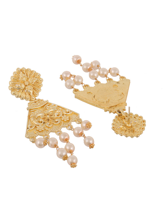 Gold Plated Triangular Pearl Drops Earrings for women