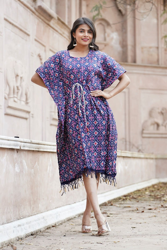 Kalamkari Chinon Silk Kaftan Midi Dress