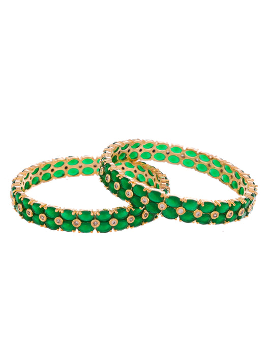 Set of 2 Gold Plated Green AD Stone Studded Handcrafted Bangles
