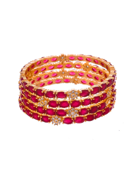 Set of 4 Gold Plated Red Stone Studded Handcrafted Bangles For Women