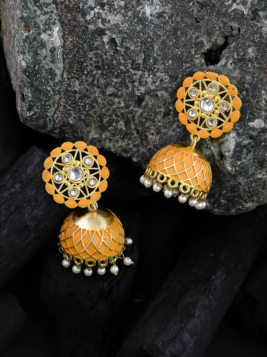 Traditional Ethnic Golden Orange Pearl Chandbali Earrings