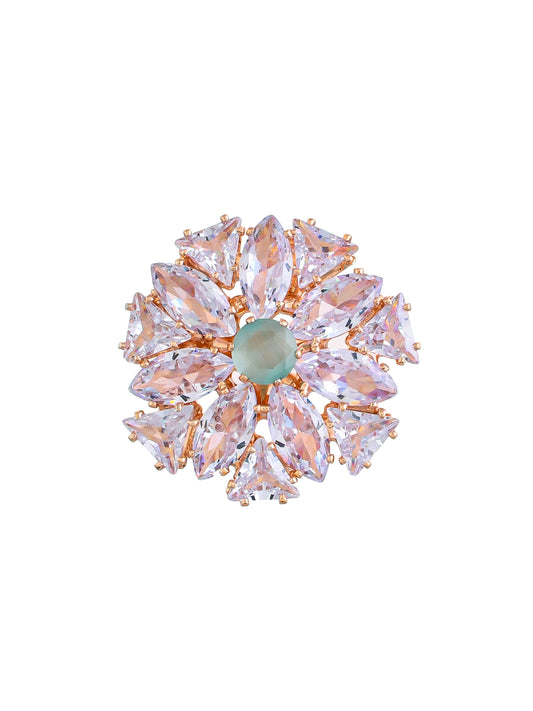 Rose Gold-Plated AD-Studded Handcrafted Adjustable Floral Ring For Women