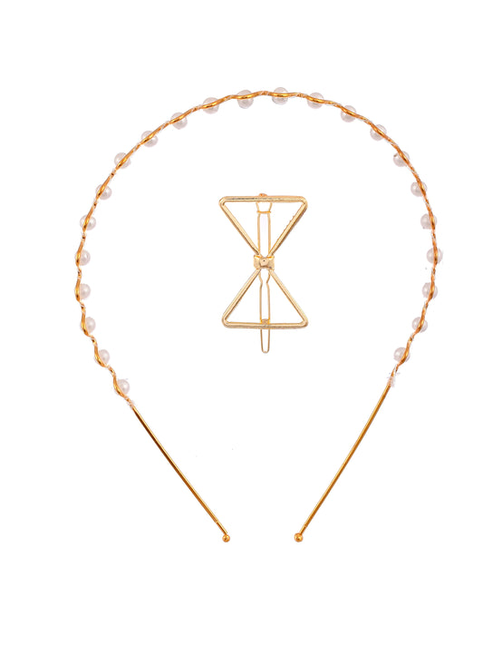 Women Gold Toned Set Of 2 Beaded Hair band Accessory Set