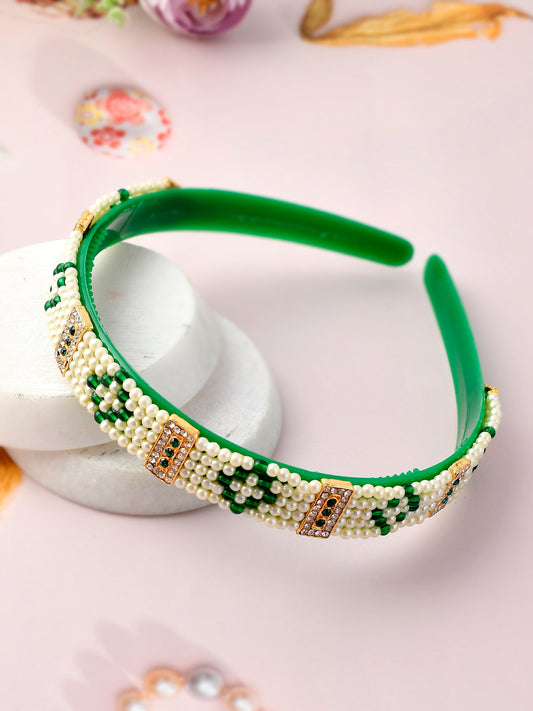 Gold Plated & Green Color Beaded Hair Band