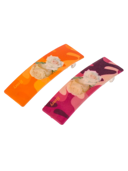 Set of 2 Multi Colored Printed Geometrical French Barette