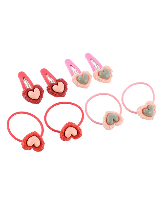 Girls Red Pink 12 Pc Embellished Hair clips Accessory Set