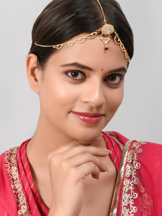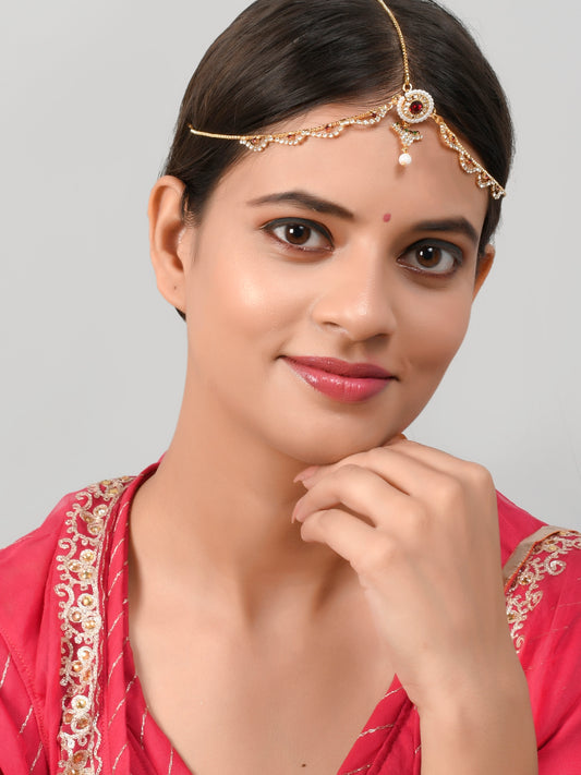 Traditional Red CZ Maang Tikka | Head Jewellery