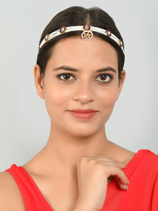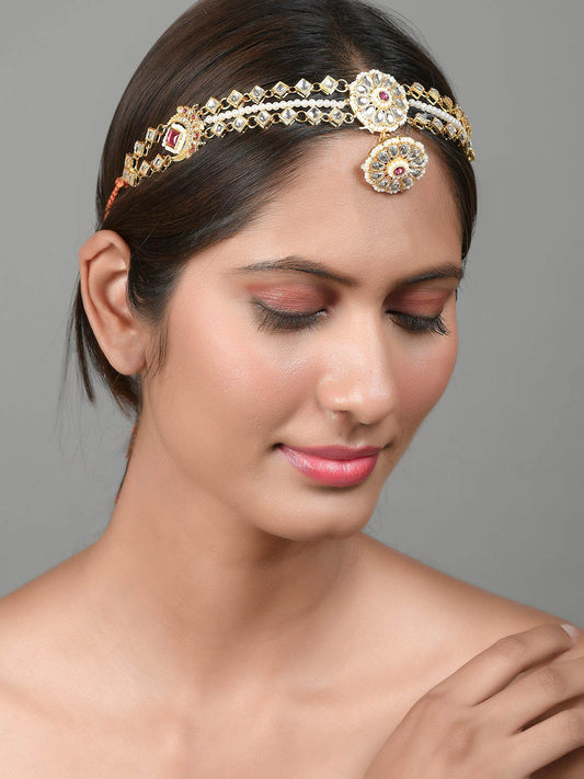 Gold Plated Pearl Kundan Maang Tikka | Ethnic Head Jewellery