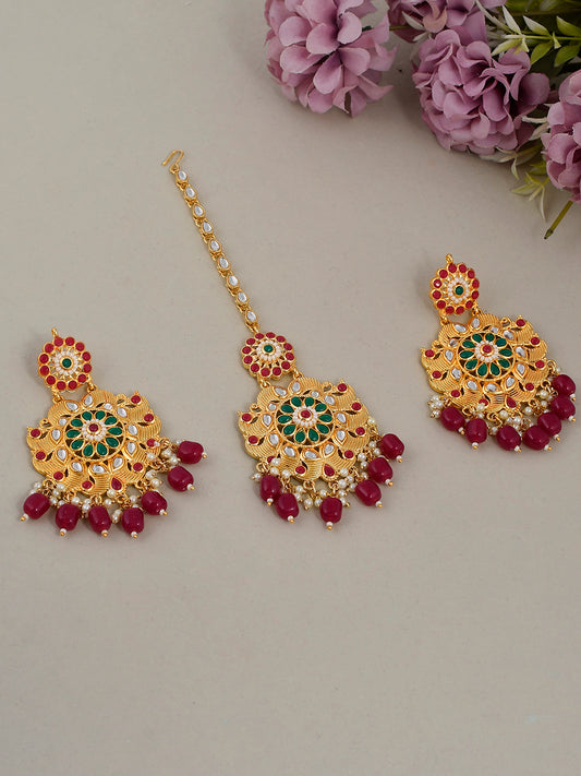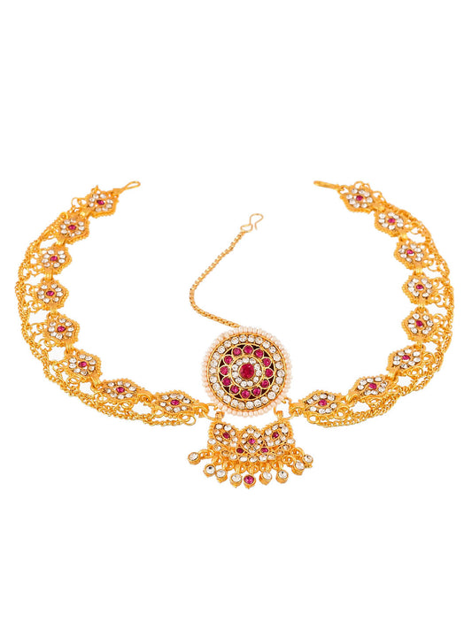 Traditional Gold Plated Red beads Maang Tikka For Women