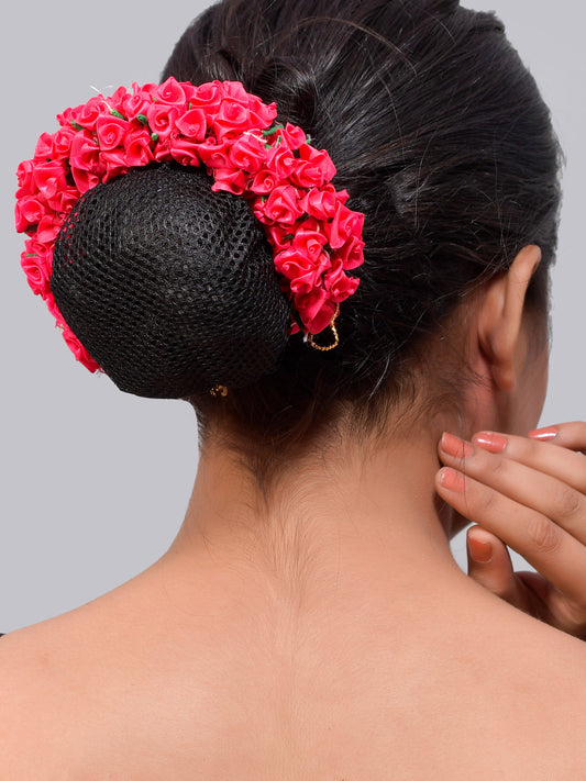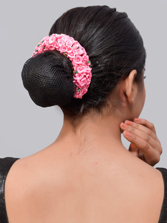 Pink Ribbon Flower Hair Bun Accessory
