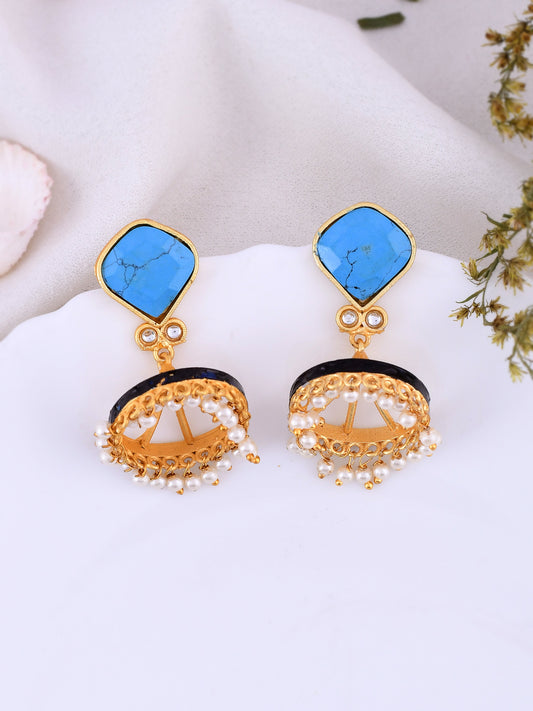 Gold Plated Blue Stone Jhumkas Earring For Women