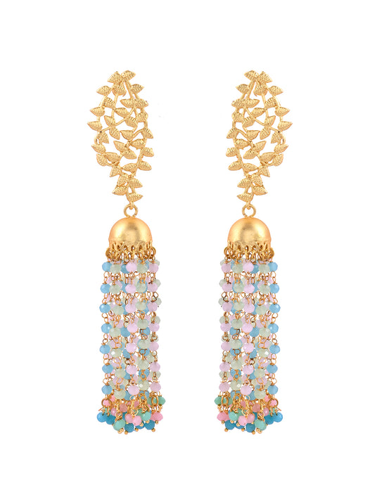 Gold Plated Oversized Tassel Jhumka Earrings For Women & Girls