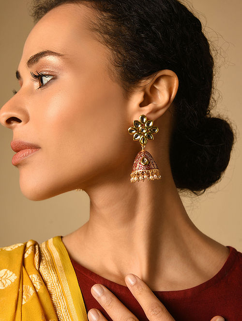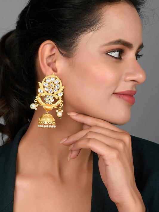 Gold-Plated Classic Kundan pearl Jhumkas Earrings