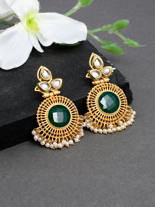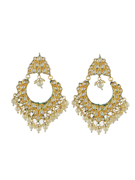 Gold-Plated Kundan Chandbali Jhumka Earrings