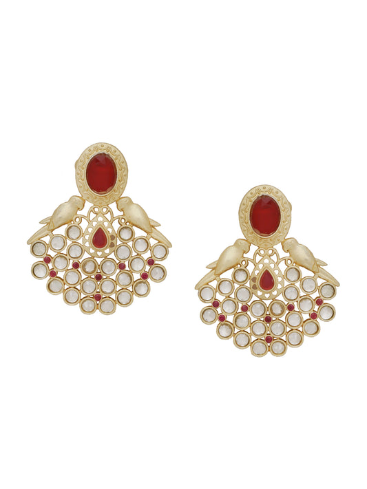 Gold Plated & Red Toned AD Stone Studded Drop Earrings