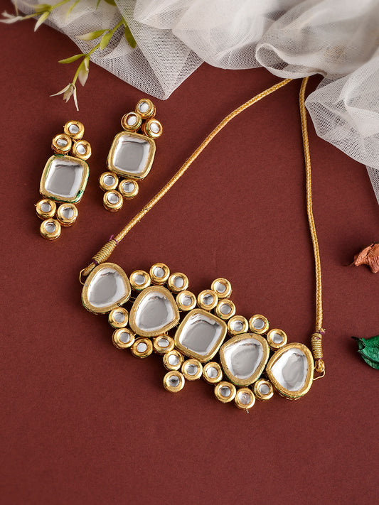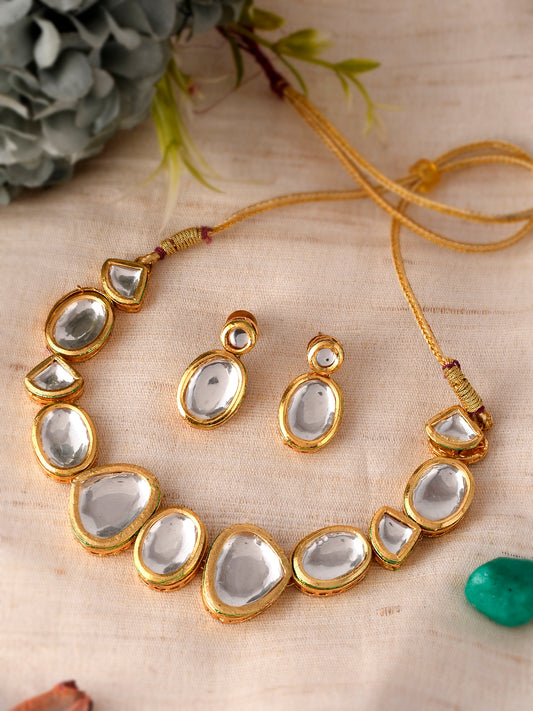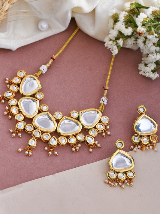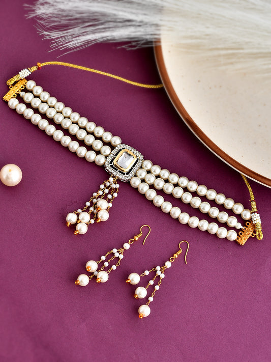 Pearl Kundan Brooch Choker Jewellery Set For Women