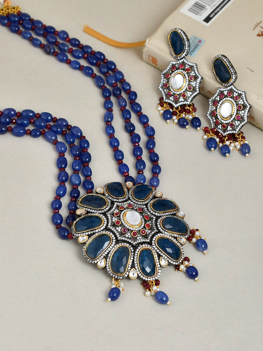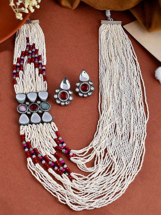 Gold Plated Kundan Long Layered Jewellery Set For Women