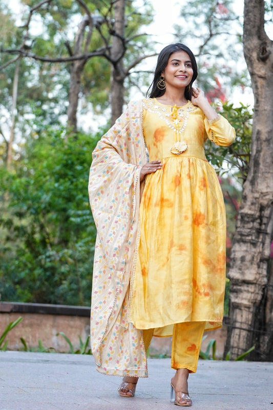 Shibori Gotta patti Naira Cut kurta set