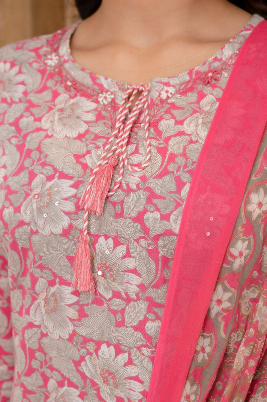 Hand Embroidered Sequence Pure Cotton Pink Kurta With Trousers & Dupatta
