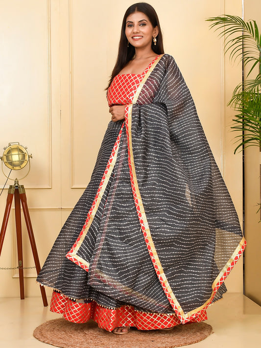 Kota Doriya Supernet Bandhani Handcrafted Ready to Wear Lehenga with unstiched blouse