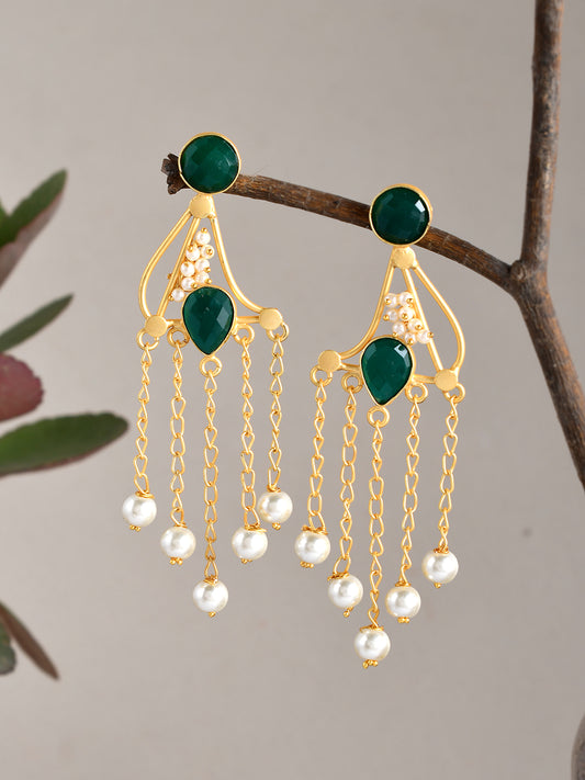 Ethnic Earrings: Perfect for traditional attire, long ethnic earrings like jhumka earrings, elegant long pearl earrings and Chandbalis are popular choices. These intricately designed pieces complement sarees, lehenga, kurtas and other ethnic wear outfits beautifully. You'll also find hoop earrings with traditional motifs to complete your ethnic look.