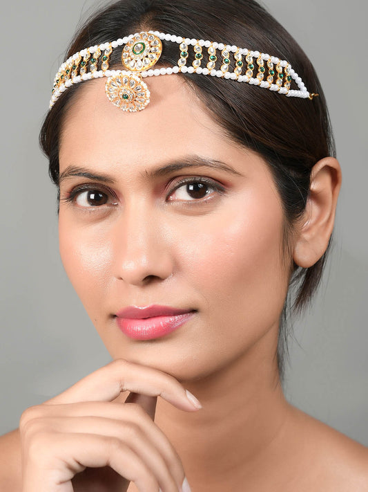 Women Gold-Plated Kundan & Pearl Matha Patti | Head Jewellery