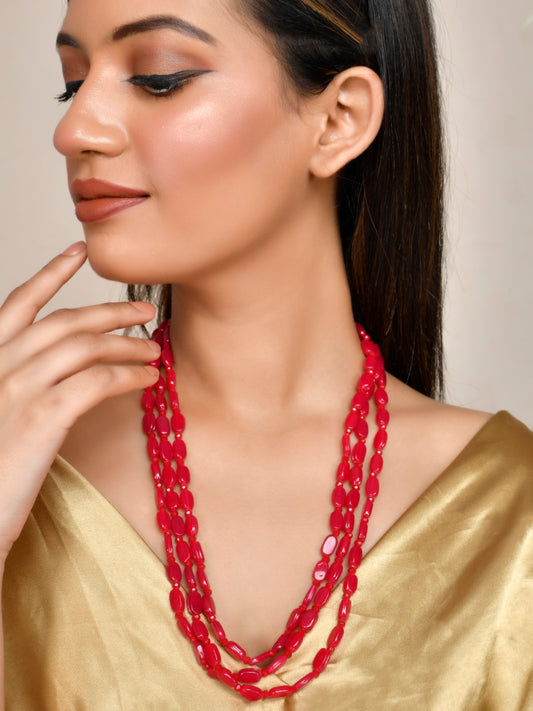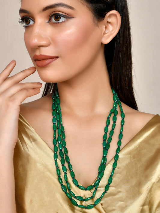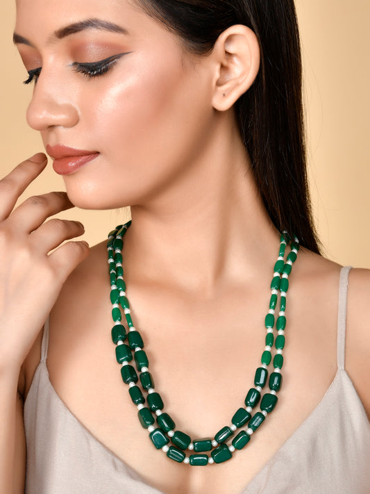 Gold-Plated Layered Stones & Beads-Beaded Brass Necklace For Women