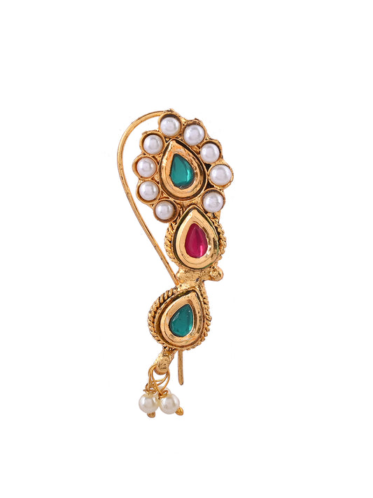 Gold-Plated Nosepin With Pearl and Red Stone Nosepin For Women