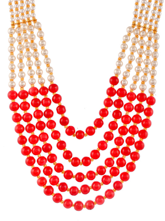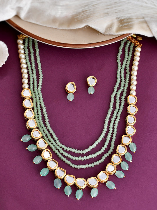 Gold-Plated Layered Stones & Beads-Beaded Brass Necklace For Women