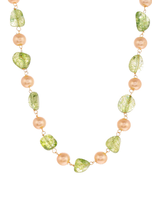 Gold Plated Green Quartz Pearl Unisex Necklace