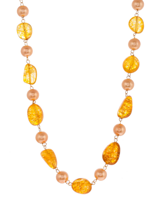 Gold Plated Yellow Quartz Pearl Unisex Necklace
