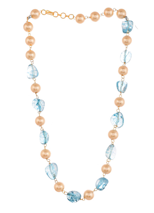 Gold Plated Blue Quartz Pearl Unisex Necklace