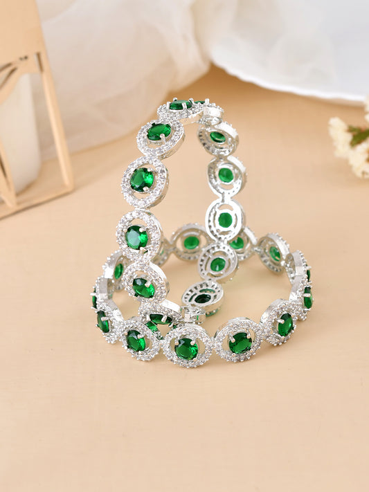 Set of 2 Silver Plated Green AD Stone Studded Handcrafted Bangles