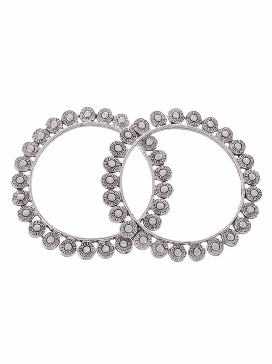 Silver Toned Oxidised Handcrafted Bangles For Women