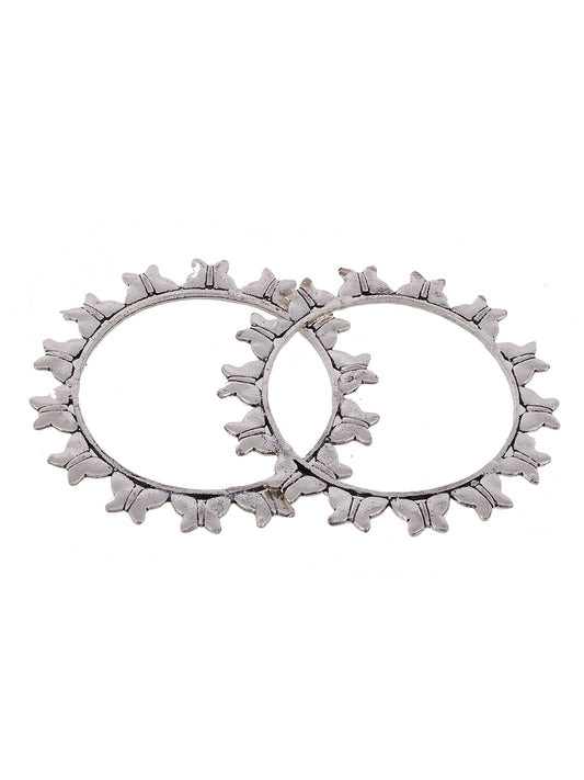 Set of 2 Silver toned Oxidised Butterfly design bangles