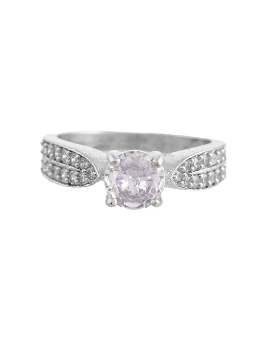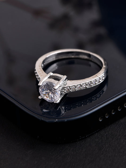 White American Diamond Studded Silver-Plated Finger Ring For Women