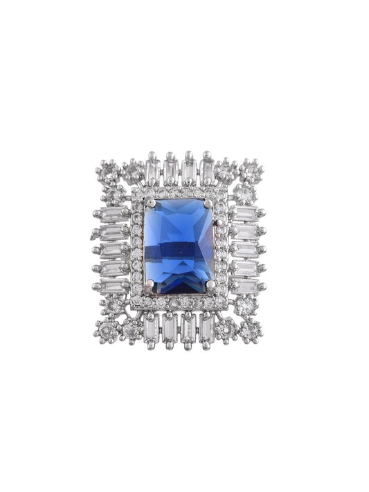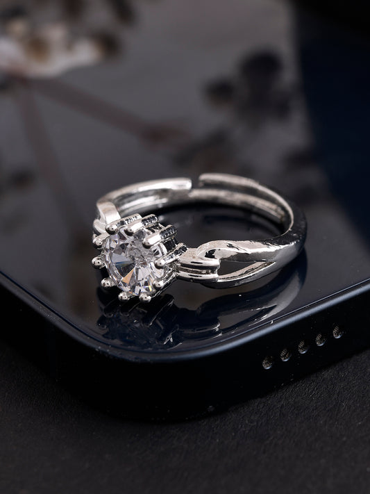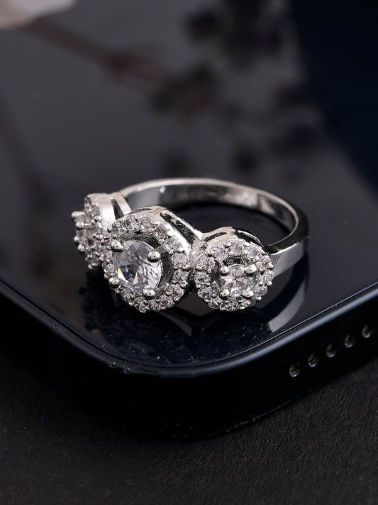 American Diamond Studded Silver-Plated Finger Ring For Women