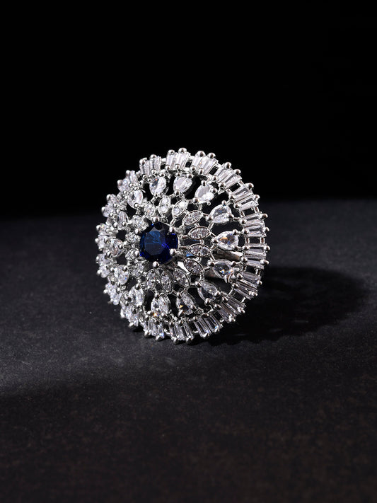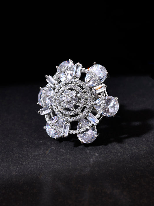 American Diamond-Studded Floral Shaped Cocktail Ring For Women