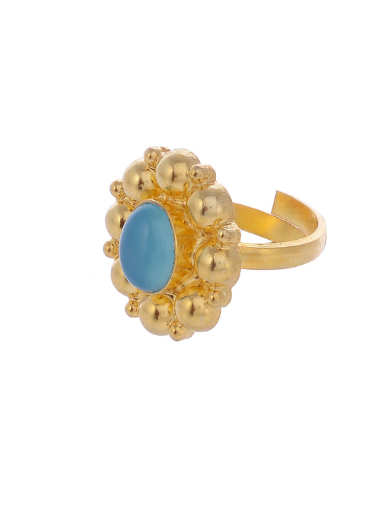 925 Sterling Silver Blue Chalcedony Gold Plated Ring