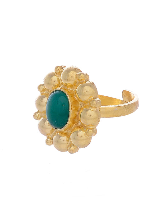 Green Onyx 925 Sterling Silver Gold Plated Adjustable Ring