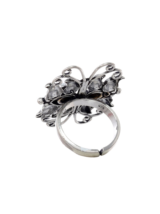 Women Handcrafted 92.5 Sterling Silver Oxidised Adjustable Ring