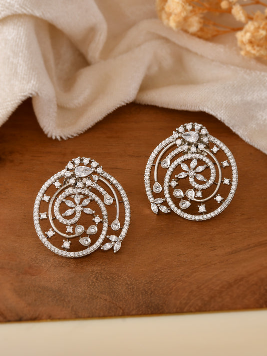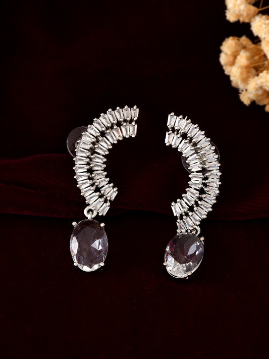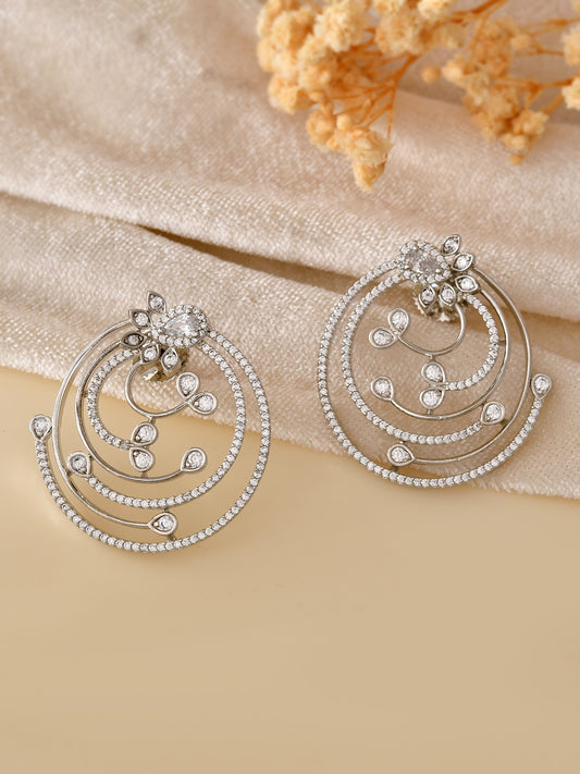 Silver Plated American Diamond Latest Statement Earrings For Women