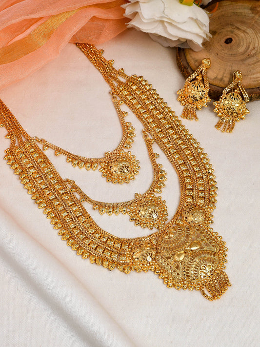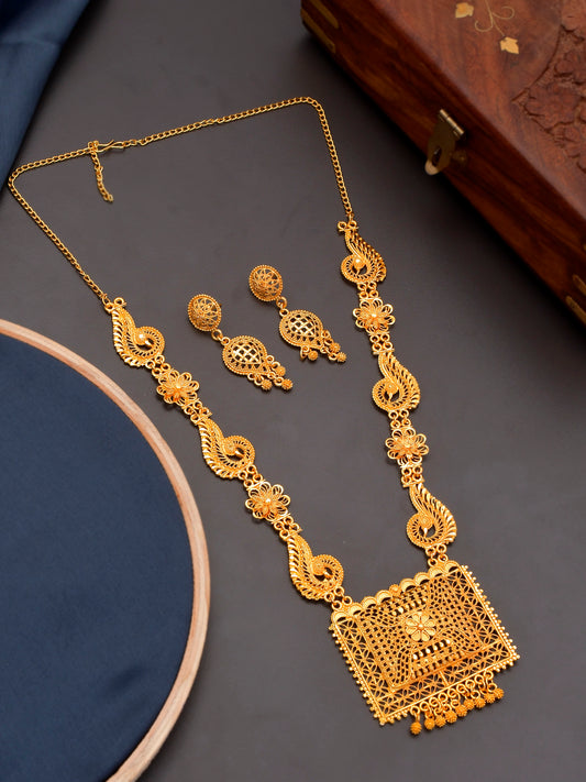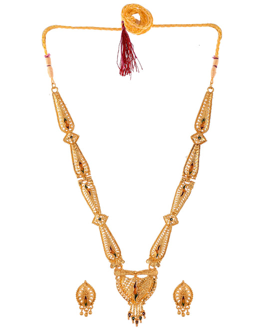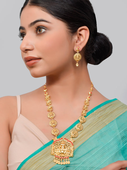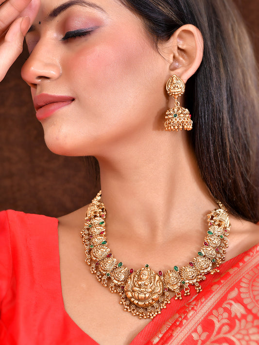Gold Tone Beautifully Crafted Temple Necklace With Earrings