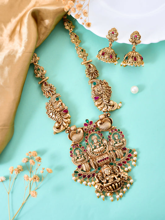 Gold-Plated Traditional Goddess Lakshmi Auspicious Temple Jewellery Bridal Set