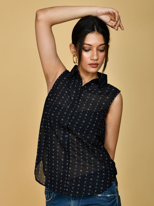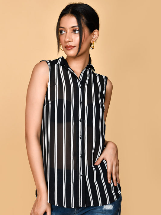 Georgette Striped Sleeveless Shirt Top For Girls/Women